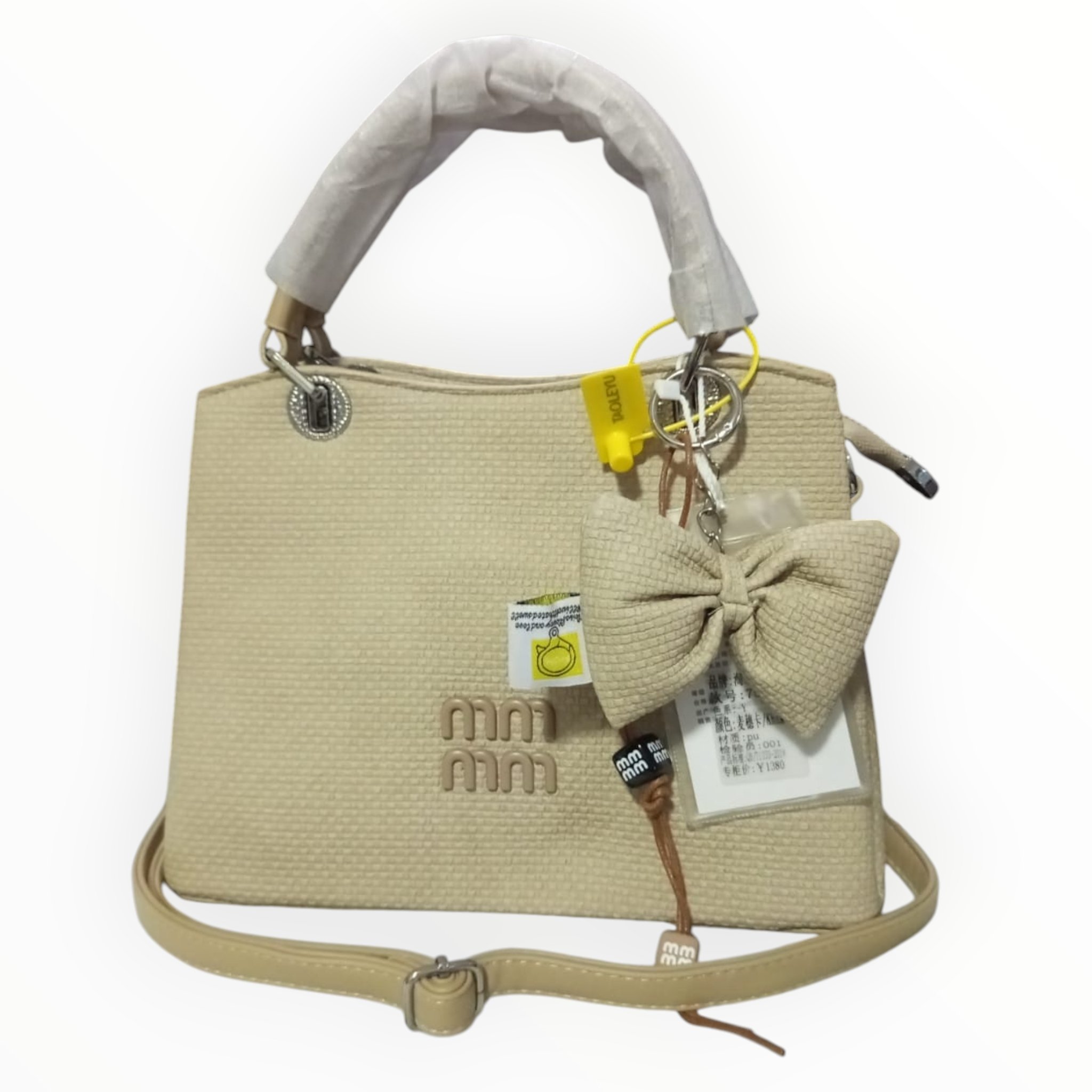 Presenta un diseño minimalista con acabado texturizado y un delicado lazo frontal que realza su apariencia femenina y chic.