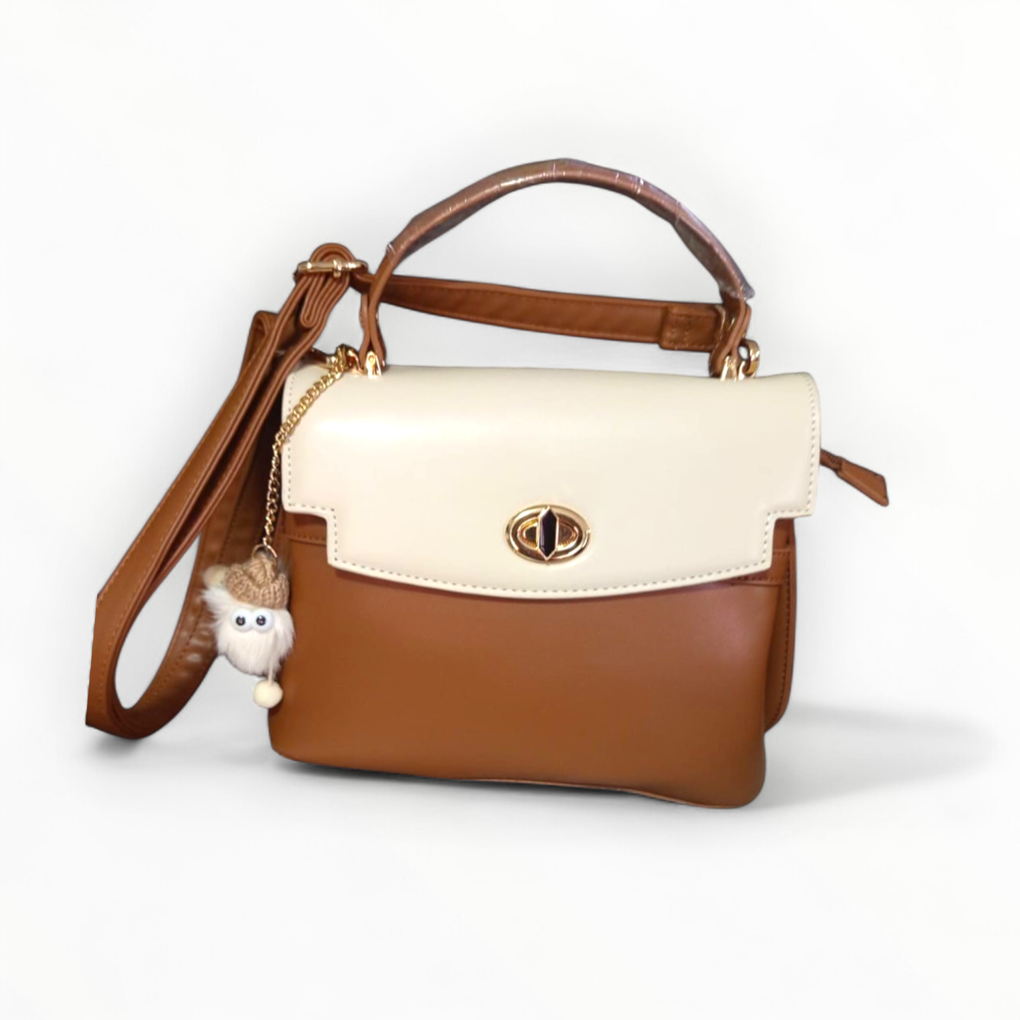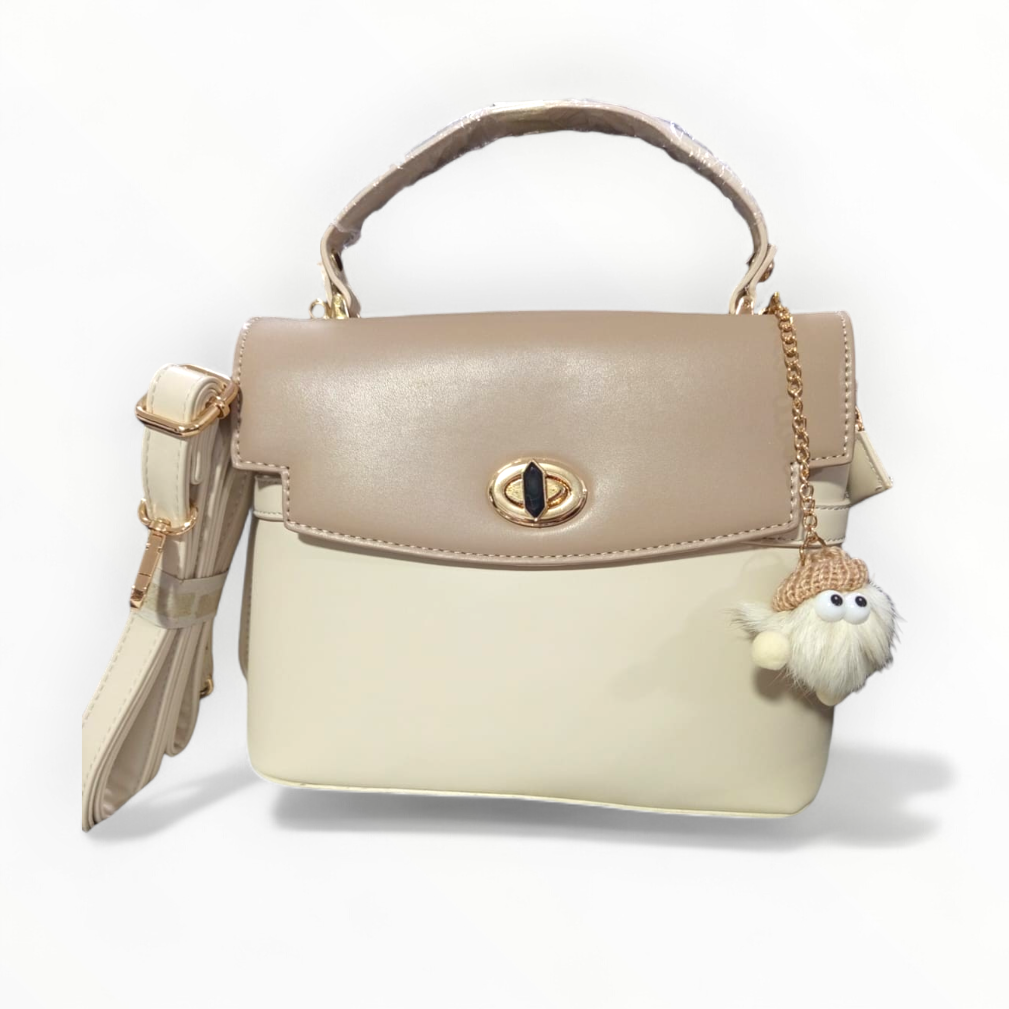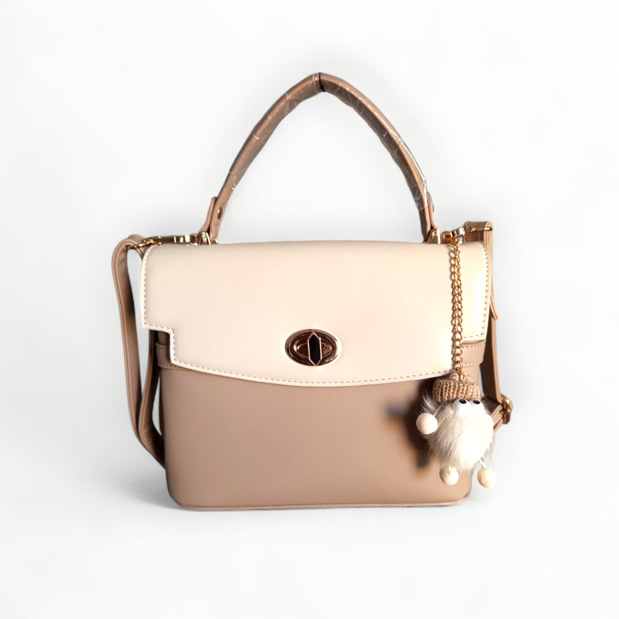 Pensada para la mujer moderna, ofrece versatilidad total gracias a su asa superior rígida y una correa ajustable que permite llevarla como bolso de mano o cruzado. El detalle final lo aporta un encantador pompón artesanal, dándole un aire lúdico y único a una pieza esencialmente sofisticada.