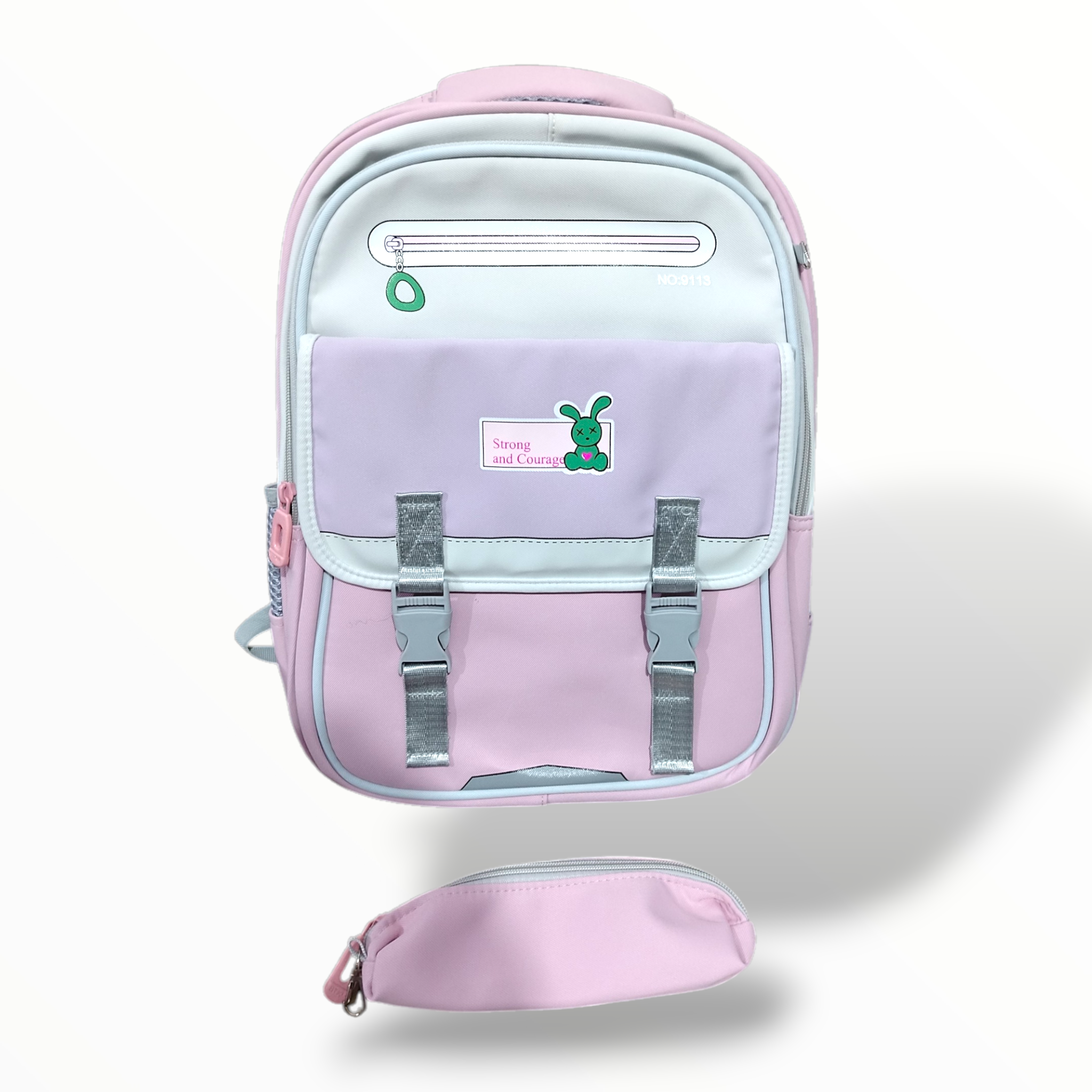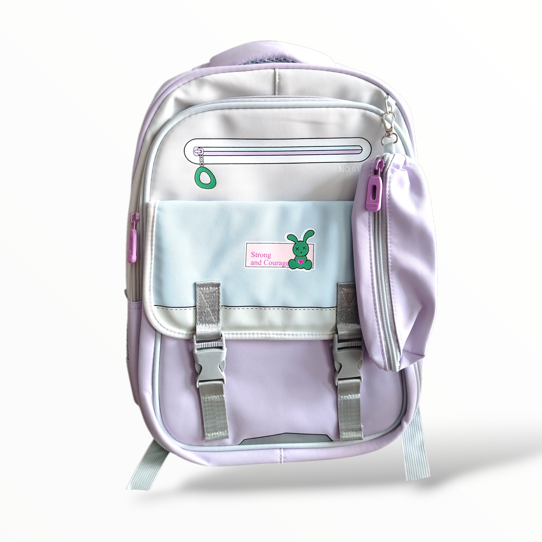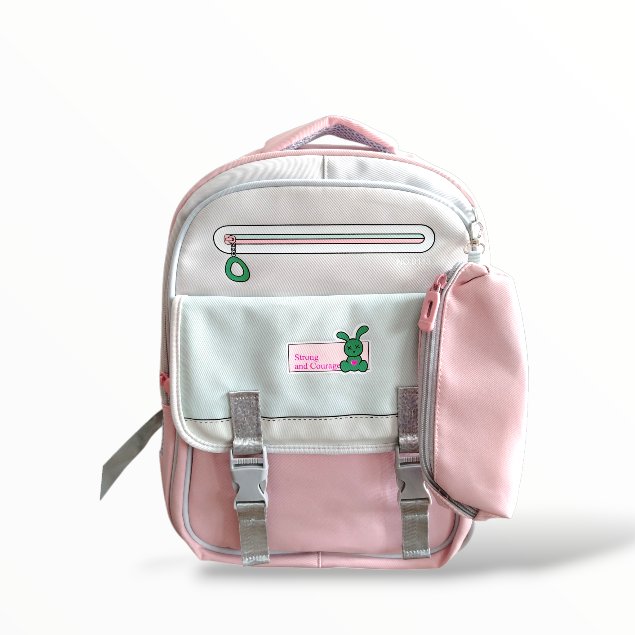 Encantadora mochila con diseño kawaii de conejito motivador «Strong and Courage». Ideal para niñas de primaria.